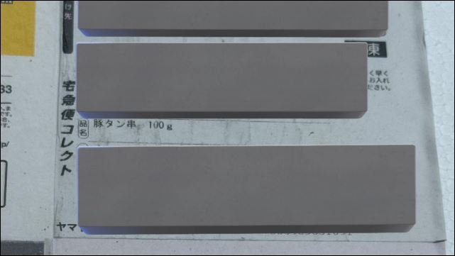 送り状にしっかり 「豚タン串 100g」 の記載…